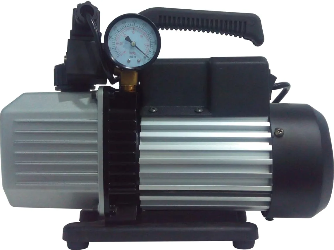 Esta bomba de vacío de 2 etapas es una herramienta profesional diseñada para aplicaciones de laboratorio que requieren niveles de vacío precisos y confiables. Con un motor de 1/3CV y 250W de potencia, ofrece una velocidad de bombeo de 1.5cfm y puede alcanzar un vacío final de 15 micrones (2 pa), ideal para procesos de desgasificación, destilación y otras aplicaciones técnicas. El diseño moderno incluye un vacuómetro integrado que permite monitorear constantemente los niveles de presión, y un solenoide para control automatizado del sistema. Su capacidad de flujo de 0.7 litros por segundo y 2.50 metros cúbicos por hora garantiza un rendimiento eficiente. El depósito de aceite de 530ml facilita el mantenimiento, mientras que su construcción robusta con dimensiones de 321x122x245mm y peso de 8.2kg asegura estabilidad durante la operación. Funcionando a 1440 revoluciones por minuto, esta bomba combina potencia y precisión para satisfacer las demandas de entornos profesionales y técnicos.