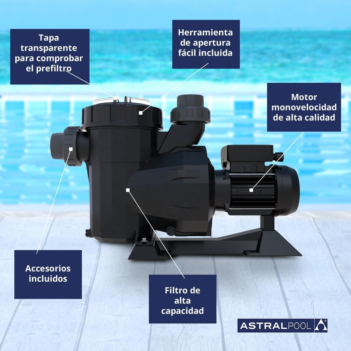 Las bombas Victoria Plus nacieron de la fusión entre las bombas Victoria y Sprint. Con esta nueva gama de bombas, AstralPool ofrece una bomba de alta prestación. De hecho, gracias a los plásticos de alta resistencia y al acero inoxidable de primera calidad, hemos obtenido muy altos rendimientos. El prefiltro con una capacidad de 4,7 l permite la retención de elementos sólidos, evitando así su entrada en el cuerpo de la bomba.