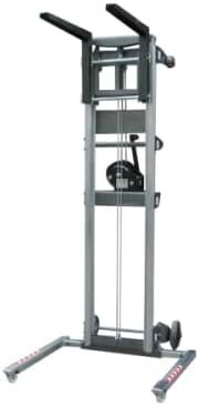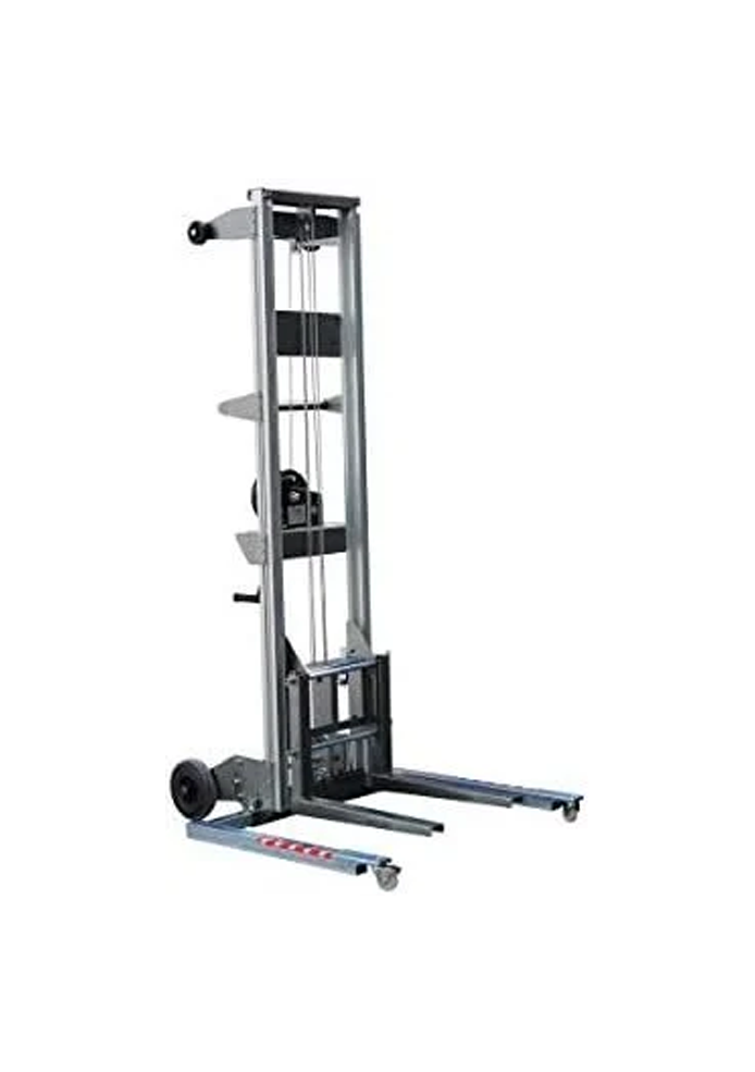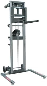 Carretilla elevadora manual, en aluminio. Altura máxima 3670 mm. Altura mínima 2060 mm. Peso 57 kg. sin palas + 12 kilos de las palas. Peso máximo elevable 160 Kg. Modelo de carretilla elevadora manual fabricada con perfil de aluminio. Esta diseñada para levantar cargas en sentido vertical. Diseño resistente, ligero y fácilmente transportable. ·Chasis fabricado en perfil de aluminio para el soporte de todos los componentes del elevador. ·Sistema telescópico accionado por un cable acerado, guiado por poleas. ·Cabrestante de 500 kg. de carga máxima con freno automático de retención de la carga. ·Carga mínima para que funcione: 25 Kg. ·Patas extensibles para el apoyo de la torre con ruedas. ·Permiten colocarse en paralelo al chasis para su transporte. ·Ruedas para el desplazamiento de la carretilla. ·Asas para un buen agarre de la carretilla. ·Horquillas de acero de gran capacidad y pintadas en pintura martelé. ·Sistemas de bloqueo que protegen el carro durante el transporte. Características: ·Altura máxima: 3140 mm. Con las paletas en posición normal. ·Altura máxima: 3670 mm. Con las palas invertidas. ·Altura mínima: 2060 mm. ·Peso: 57 Kilos sin palas, 12 Kilos palas. ·Anchura: 650 mm. ·Carga máxima elevable: 160 kilos. ·Conforme a la Normativa CE.