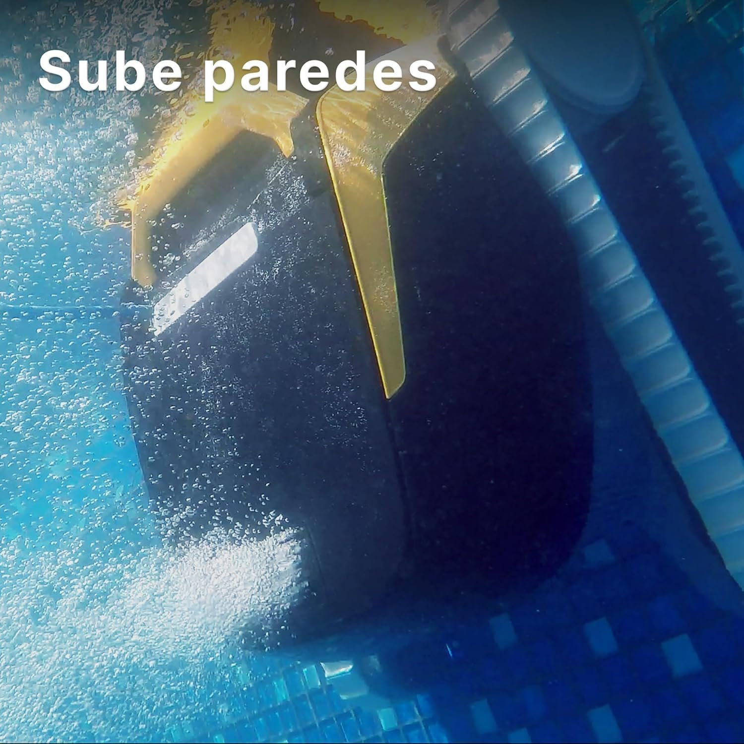 - Sube paredes: Excelentes capacidades para subir paredes que permiten una limpieza eficaz tanto del fondo, como de las paredes de la piscina, sin importar el tipo de superficie o la forma.