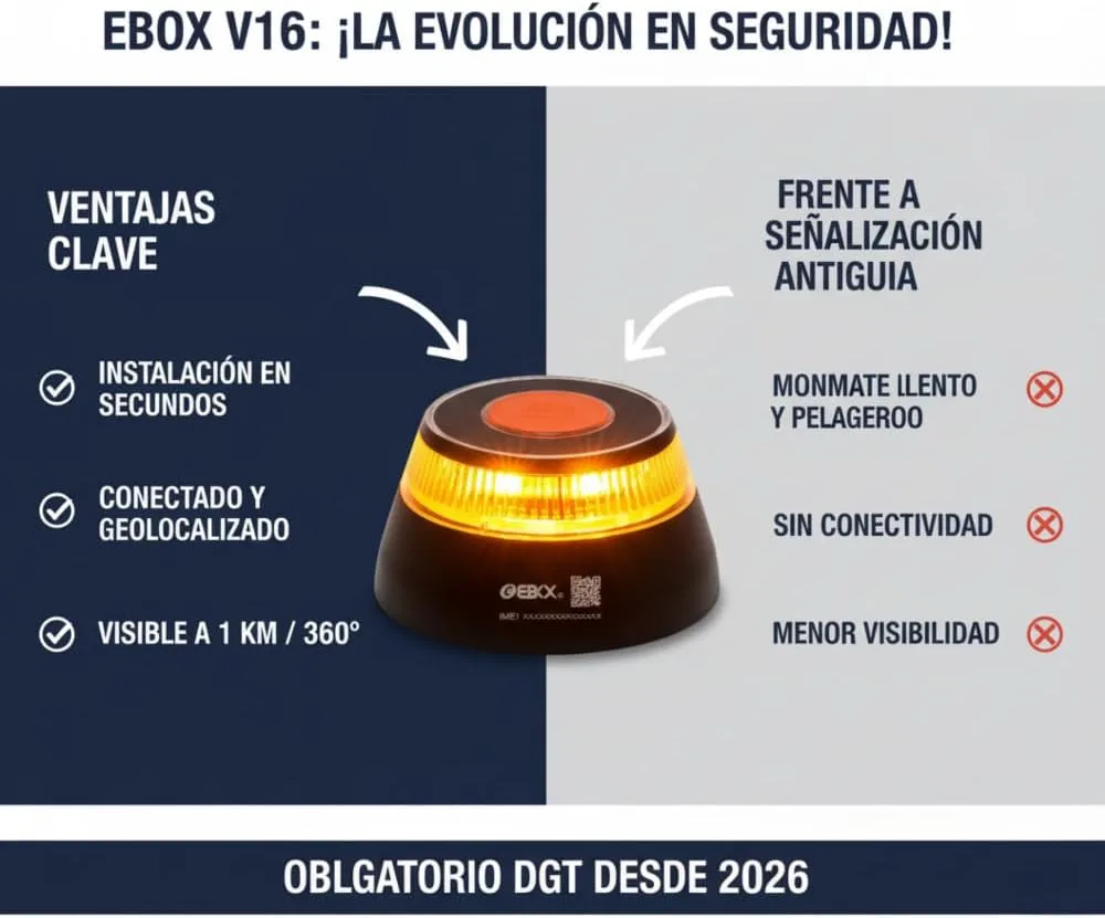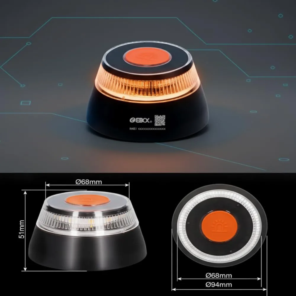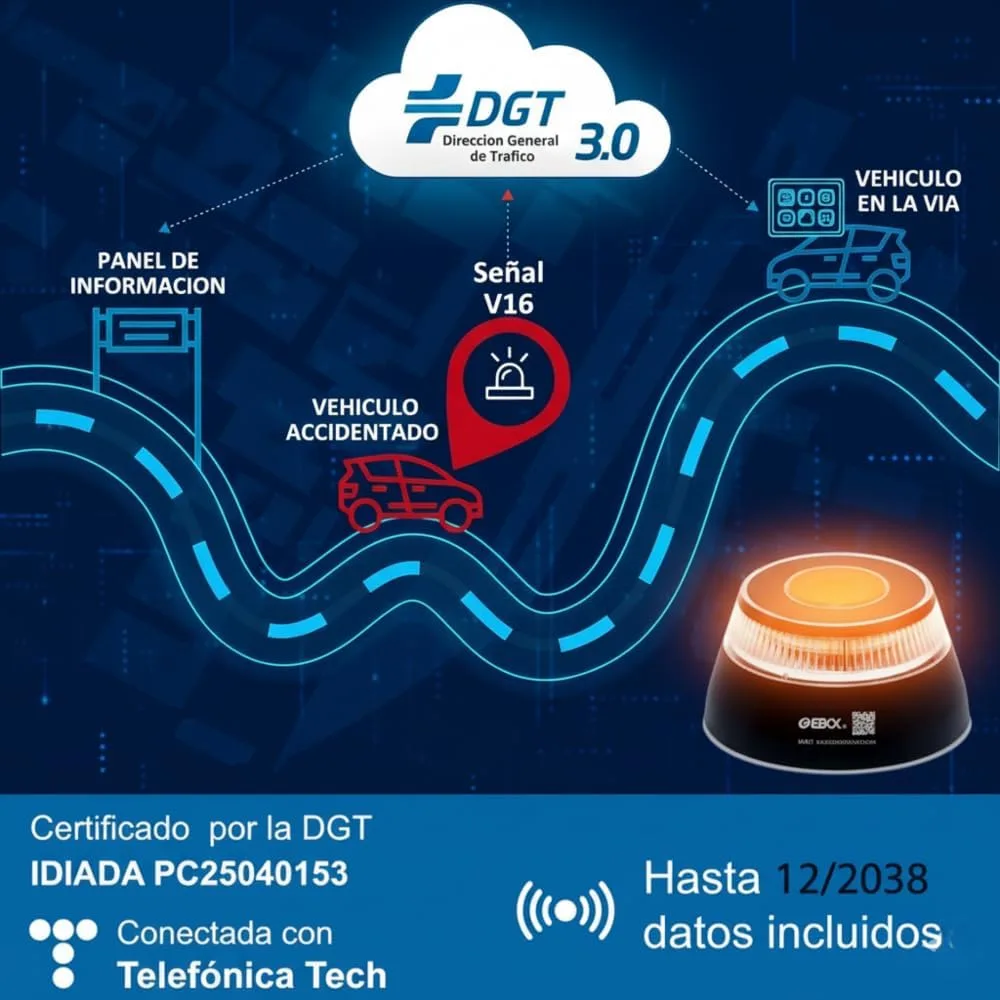 EBOX Luz Emergencia V16 Geolocalizada V16loT. Homologada DGT con Geolocalización, Baliza Coche Conectada DGT 3.0, Datos Incluidos hasta 12/2038,