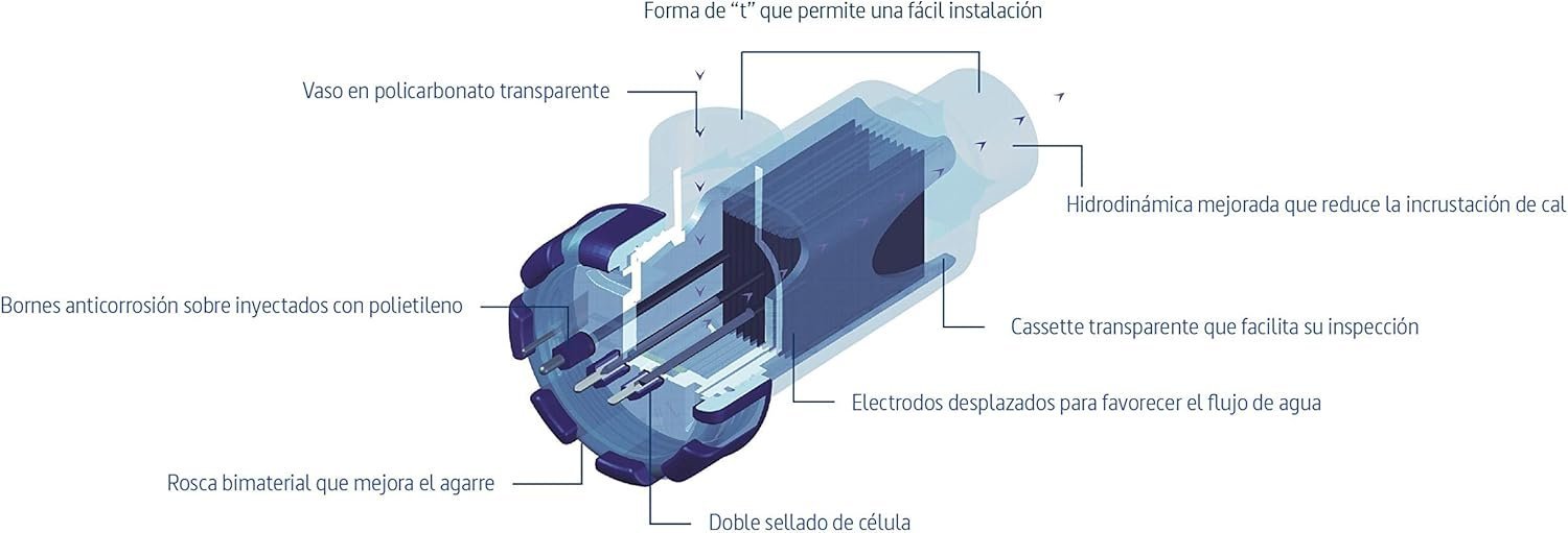 - Produce hasta 10 g/h, Concentración de sal 5 g/h, 3 años de de fábrica, Sistema compacto para fácil instalación, Sistema de electrólisis salina Innowater SMC10, Celda grande de titanio, hasta 14000 horas de vida útil