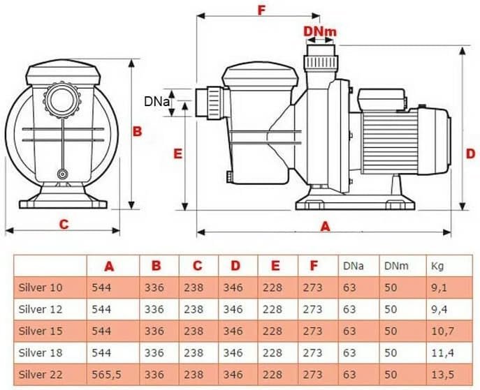 Bomba Silver 18 Tri 18 m3/h, 1CV. Silencioso, prefiltro de gran capacidad. Autocebante a 4 m, compatible con agua dulce y salada.