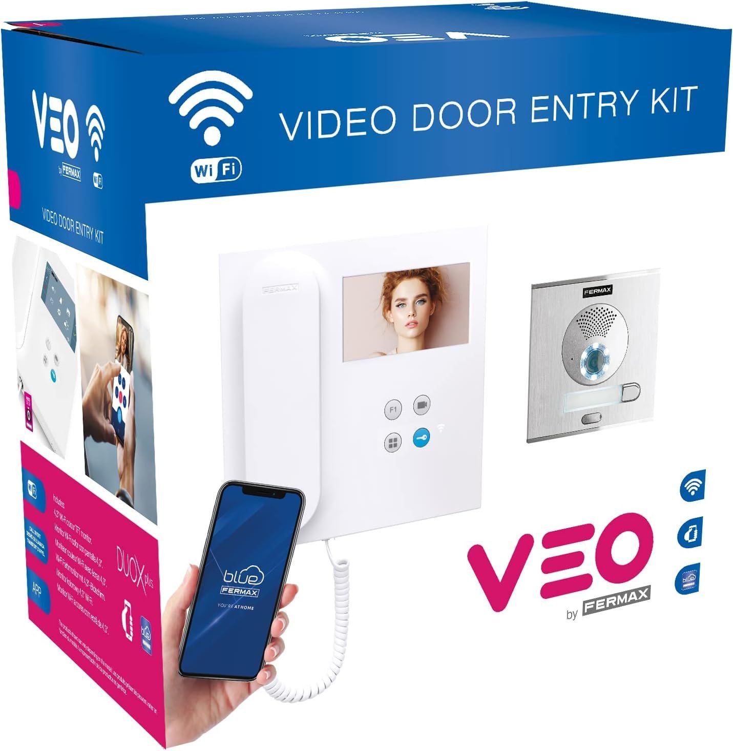 El Kit de Videoportero Fermax Video City Veo WiFi DUOX Plus 1L es una solución completa para viviendas, oficinas o negocios. Incluye placa de calle CITYLINE, monitor VEO WIFI y alimentador, funcionando con DUOX PLUS. Permite la integración con sistemas de seguridad y ofrece opciones de entrada sin llave como teclado, tarjetas y acceso biométrico. Este kit es una opción conveniente y segura para controlar el acceso.