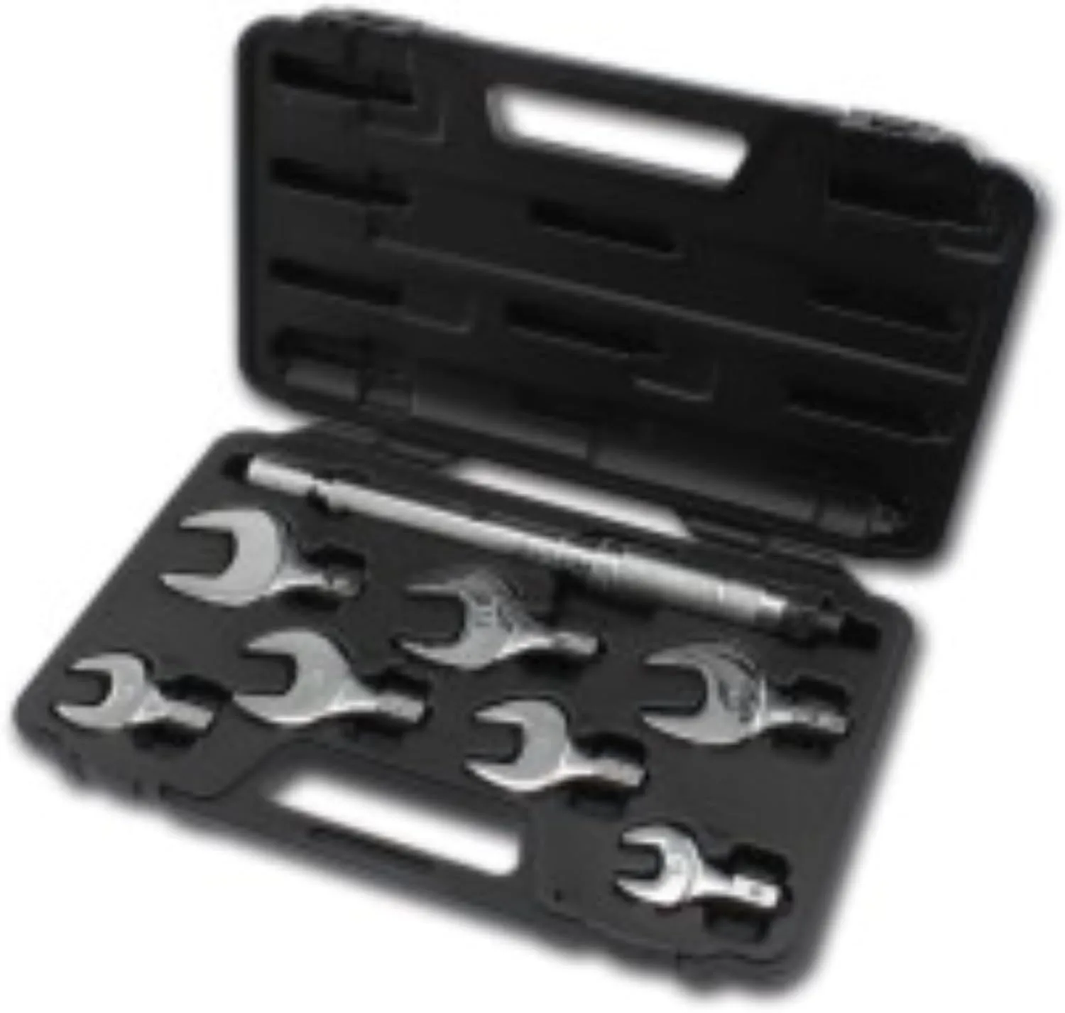 Este juego de llaves dinamométricas profesionales está especialmente diseñado para trabajar con sistemas de alta presión que utilizan gas refrigerante R410a. El conjunto incluye 7 llaves con tamaños de mandíbula de 17, 19, 22, 24, 26, 27 y 29 mm, proporcionando la versatilidad necesaria para diferentes aplicaciones de refrigeración y climatización. Cada llave cuenta con torquímetro integrado y marcas de par de apriete claramente indicadas en N/m (Newton/Metros) con valores de 10, 18, 42, 55, 65 y 75, permitiendo un ajuste preciso y controlado que evita daños en las conexiones y garantiza instalaciones seguras. Las llaves dinamométricas son herramientas esenciales para técnicos de refrigeración y aire acondicionado, ya que permiten aplicar la fuerza exacta requerida en cada conexión del sistema. El juego se presenta en un práctico estuche de almacenamiento que facilita el transporte y mantiene las herramientas organizadas y protegidas. Ideal para profesionales que buscan precisión y confiabilidad en sus instalaciones de sistemas de climatización.
