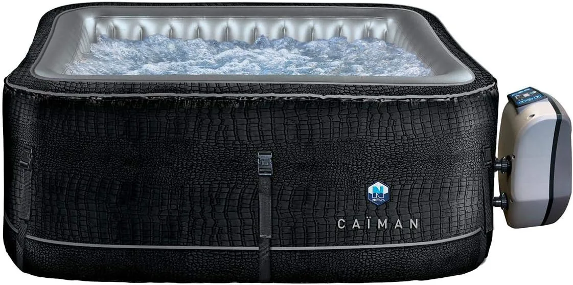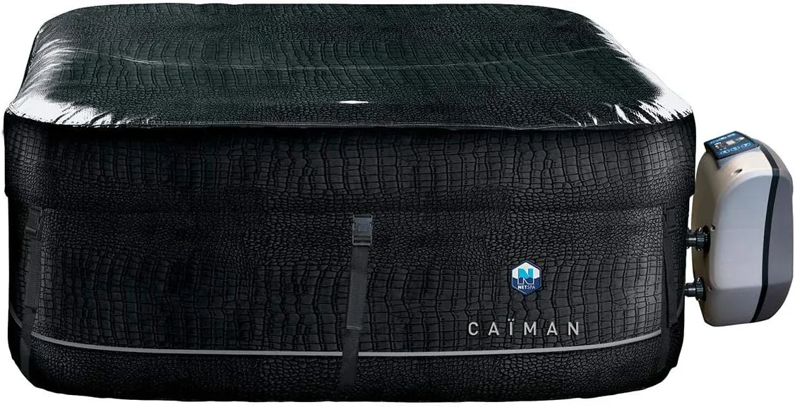 Este spa decora tu casa o jardín con elegancia: diseñado con un revestimiento de efecto cocodrilo, el spa Caimán es elegante y resistente, con un revestimiento de PVC laminado de piel sintética y un interior perla. Su motor inteligente y económico tiene una triple función: masaje, calefacción y filtración