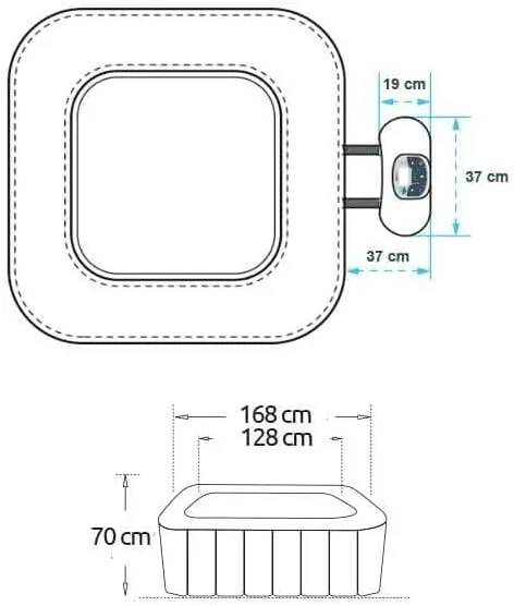 Disfruta de un momento de relajación: el spa hinchable cuadrado está optimizado para espacios pequeños y ofrece espacio para 4 personas. Su formato compacto ofrece una relajación máxima con burbujas relajantes en el baño caliente hasta 42 °C y boquillas de masaje dispersas a 360 ° para una ebullición homogénea. El bloque motor calienta rápidamente el agua del estanque para poder disfrutar lo más rápido de tu jacuzzi.