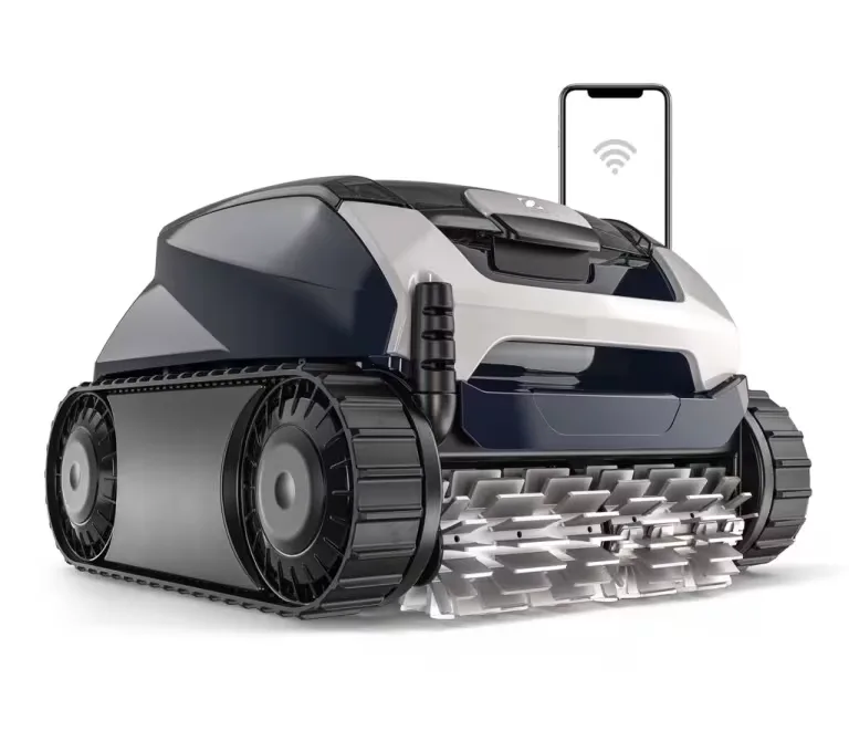 Robot limpiafondos inteligente y conectado, perfecto para piscinas de hasta 12 × 6 m. Limpia fondo, paredes y línea de agua con aspiración ciclónica potente, filtro doble de 4 L y control desde tu móvil para una limpieza profesional con un solo click.